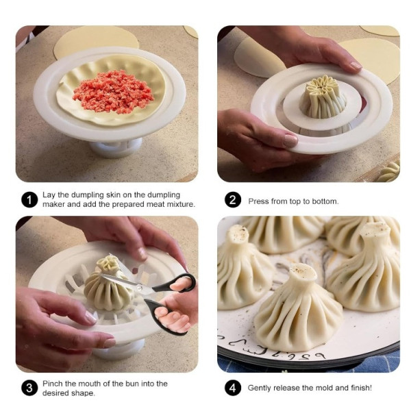 Апарат для ліплення хінкалі Khinkali Maker — це практичний кухонний помічник, який дає змогу швидко та акуратно формувати ідеальні хінкалі з рівними складками. Пристрій створений для домашнього та професійного використання, підходить для приготування пельменів, вареників та інших виробів із тіста.