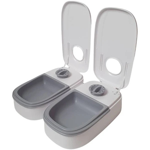 Дві окремі секції об'ємом 355 мл дають змогу подавати як сухий, так і напіввологий корм, а також ласощі. Кришки із захистом від несанкціонованого доступу не дадуть вихованцеві дістатися до їжі раніше часу. Лотки легко виймаються й миються вручну або в посудомийній машині.