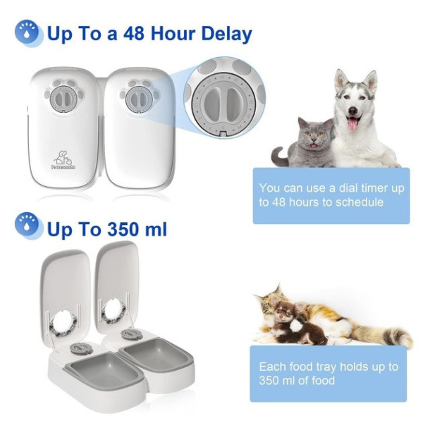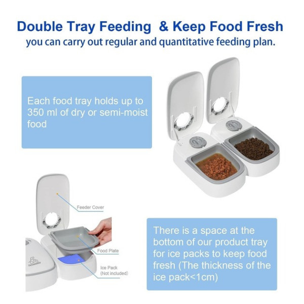 Автоматична годівниця з таймером для котів і собак PetnessGo Automatic 2 секції 355 мл