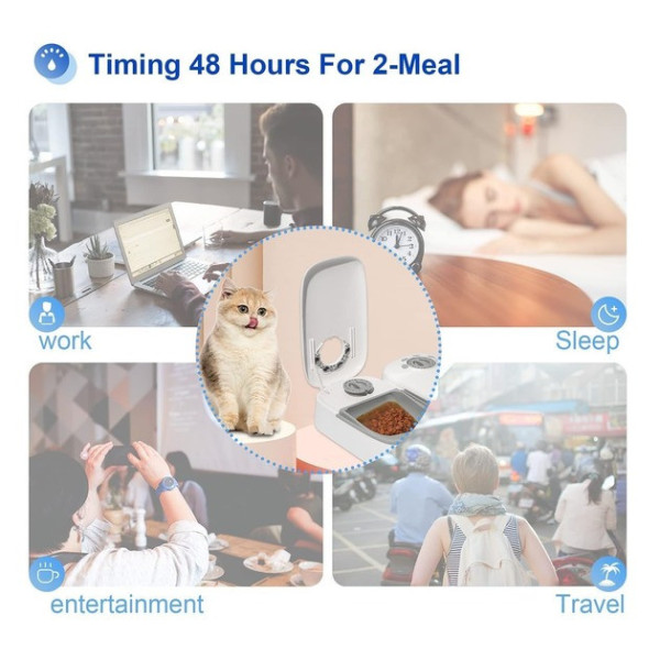 Автоматична годівниця PetnessGo Automatic — це зручне рішення для дбайливих власників котів і собак, яке забезпечить вихованця живленням точно за розкладом. За допомогою вбудованого таймера ви можете настроїти час подавання їжі на 24 години вперед із кроком 30 хвилин, навіть якщо вас немає вдома.