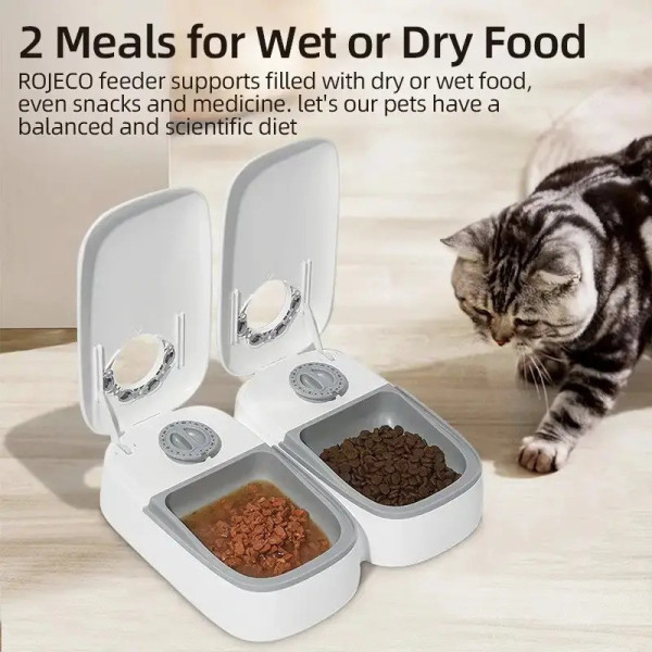 Міцний корпус із безпечного ABS-пластику (без BPA) гарантує довговічність і безпеку використання. Годівниця працює від мережі або однієї батарейки AA, що робить її зручною як удома, так і в поїздках.
