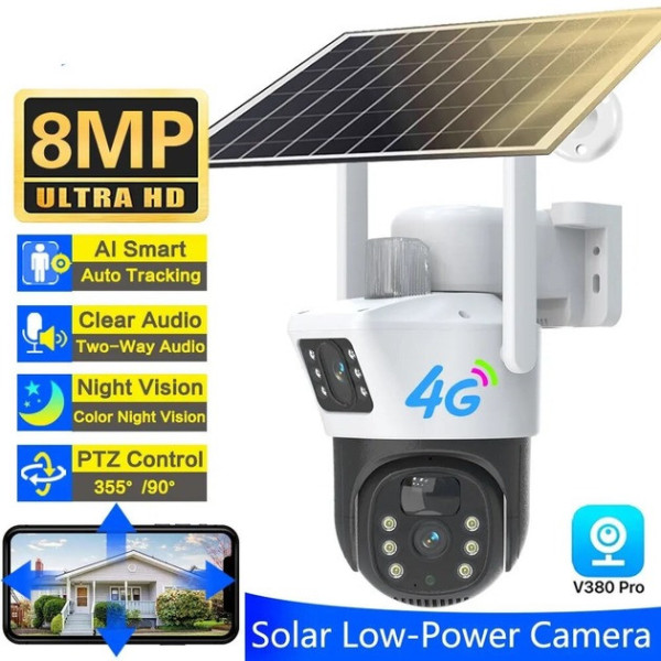 Автономна 4G камера V380 PRO V36 із сонячною панеллю, 8 МП, поворотна, IP66