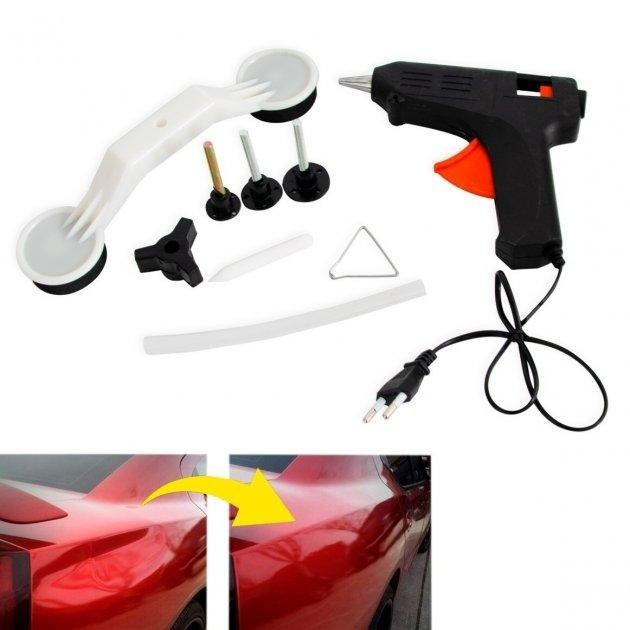 Зробити це можна за допомогою Pops-a-Dent – набору для вирівнювання вм'ятин, який складається з: