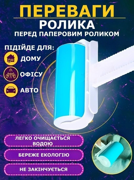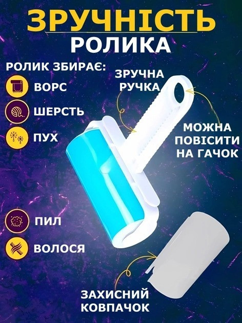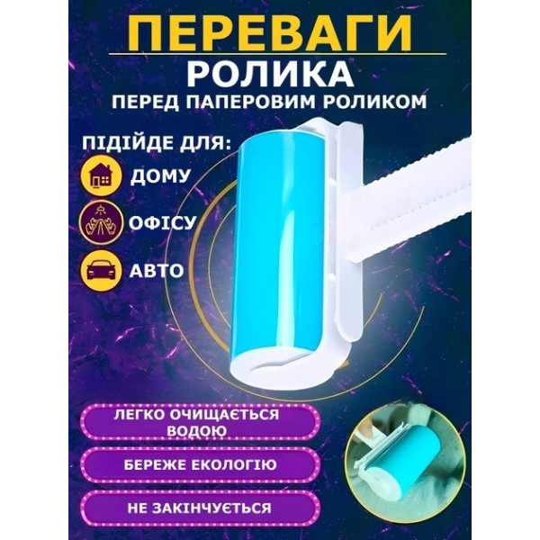 Багаторазовий силіконовий ролик — зручний і практичний інструмент для швидкого прибирання. Липка силіконова поверхня ефективно збирає шерсть хатніх тварин, пил, крихти та дрібні забруднення з одягу, меблів, підлоги та салону автомобіля. Обертовий механізм і ергономічна ручка роблять процес легким і комфортним, а можливість багаторазового використання після промивання водою з милом економить кошти та час.