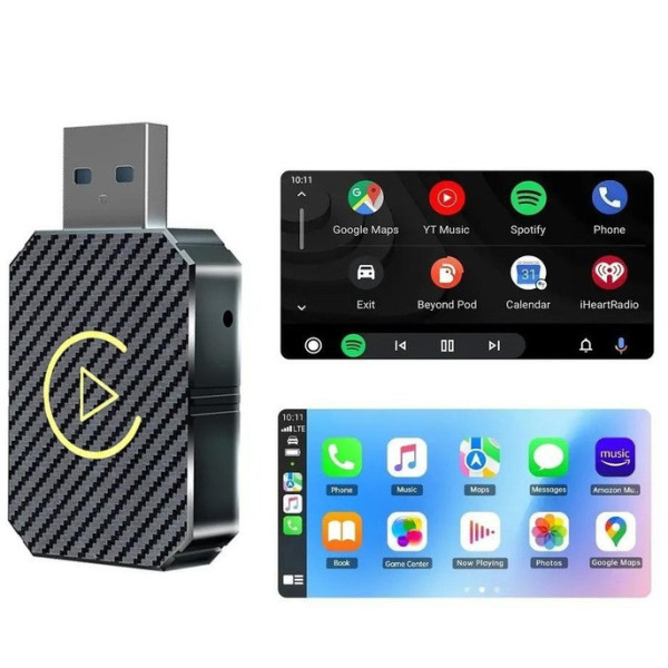Перетворіть дротовий CarPlay/Android Auto вашого автомобіля на бездротову систему за допомогою адаптера USB Bluetooth. Він забезпечує автоматичне під'єднання і зручне керування через сенсорний екран, голосові команди та кнопки автомобіля.