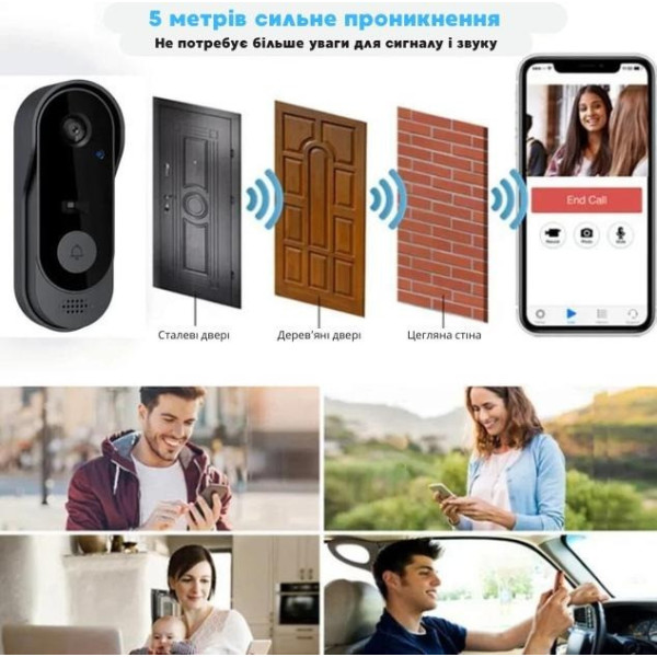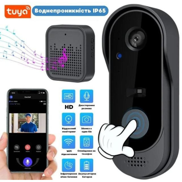 Бездротовий відеодзвінок Tuya Smart Life Doorbell з камерою, Wi-Fi, нічним баченням і двостороннім зв'язком