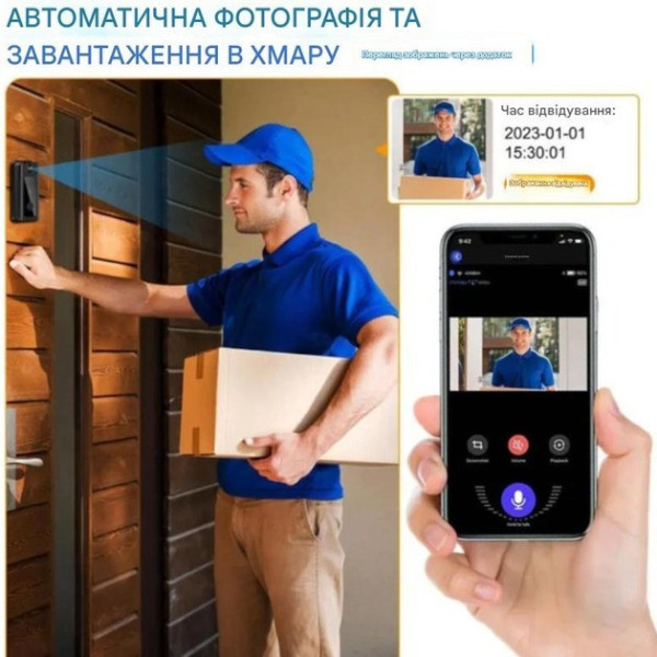 Tuya Smart Life Doorbell — це надійне рішення для контролю доступу та безпеки вашого дому. Під'єднання через Wi-Fi 2,4 ГГц і керування через програми Tuya або Smart Life дають змогу бачити та спілкуватися з відвідувачами в режимі реального часу з будь-якого місця.