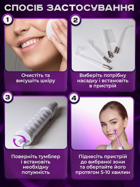 Дарсонваль для обличчя та волосся з 4 насадками, компактний косметологічний прилад для дому