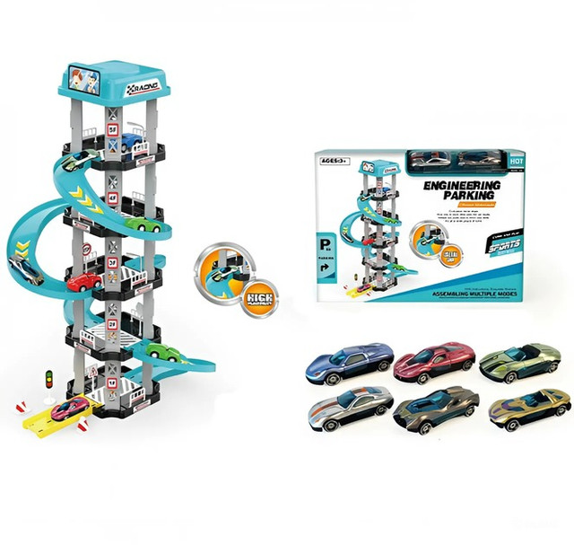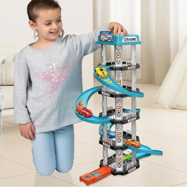 Дитячий перегоновий трек-парковка MH2003 подарує дитині захопливий годинник гри та веселощів. Машинки мчать звивистим треком, а електричний ліфт підіймає їх на верхній поверх для нового захопливого спуску. Такий ігровий набір поєднує механіку й автоматичні елементи, роблячи гру максимально динамічною та цікавою.