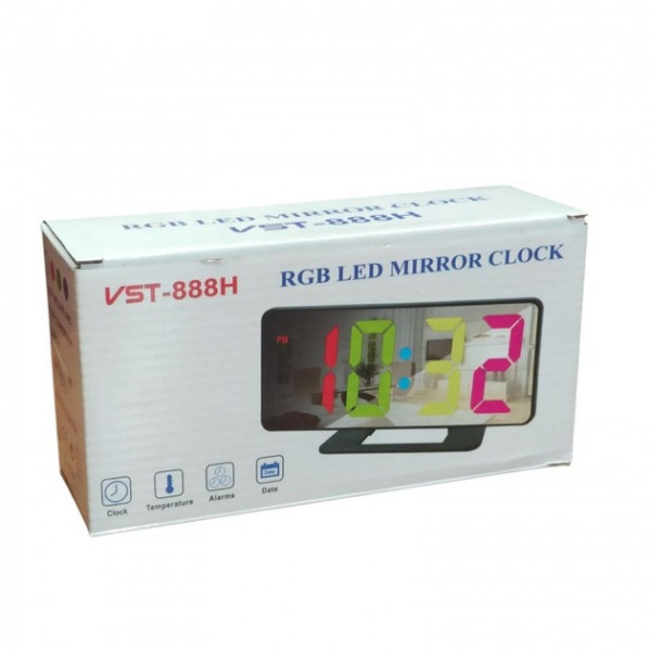 Дзеркальний LED-годинник VST-888H RGB Хамелеон з будильником, термометром і USB-живленням