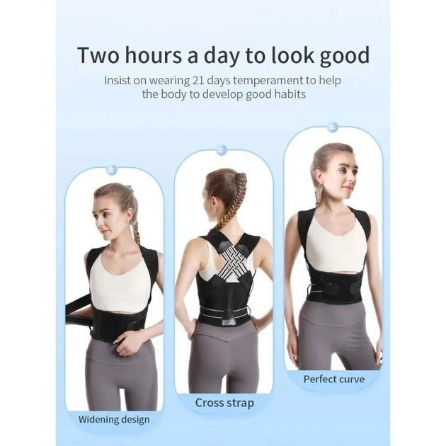 Коректор постави допомагає позбутися болю в спині та поліпшити поставу всього за 21 день регулярного використання. Він забезпечує надійну підтримку спини, розвантажує хребет і сприяє формуванню правильної постави.