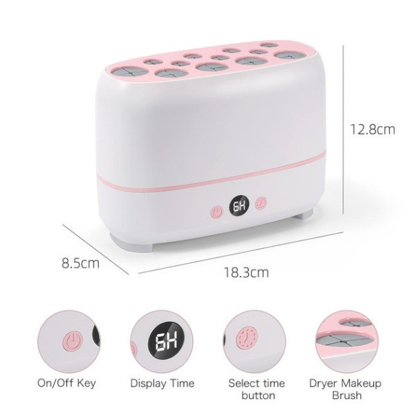 Електрична сушарка AND LY-610 призначена для дбайливого та швидкого сушіння пензлів для макіяжу. Пристрій обладнаний 12 отворами різних розмірів, що дає змогу одночасно сушити пензлі різних форм і довжини. Інтелектуальна система термоконтролю підтримує оптимальну температуру до 65 °C, запобігаючи деформації щетини та продовжуючи термін експлуатації пензлів. Сушарка підходить як для професійного використання, так і для домашнього догляду за косметичними інструментами.