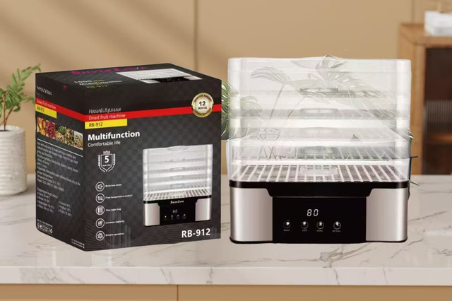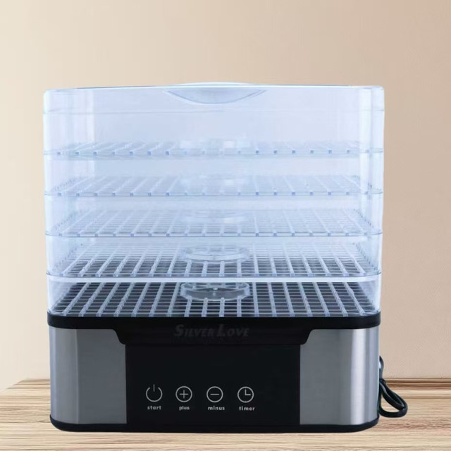 Компактний дизайн і 5 знімних ярусів дають змогу легко розмістити електросушарку на кухні та використовувати її як для невеликих, так і для великих обсягів продуктів. Вона підходить для приготування сухофруктів, овочевих сумішей, сухого м'яса, риби, чипсів і зимових заготівок.