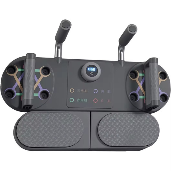 Багатофункціональний тренажер MAG-792 об'єднує три ключові елементи для повноцінного домашнього тренування: платформу для віджимань, дошку для планки та еспандер. Завдяки цьому пристрою можна ефективно опрацьовувати м'язи грудей, преса, рук, спини, сідниць і ніг без потреби відвідування спортзалу.