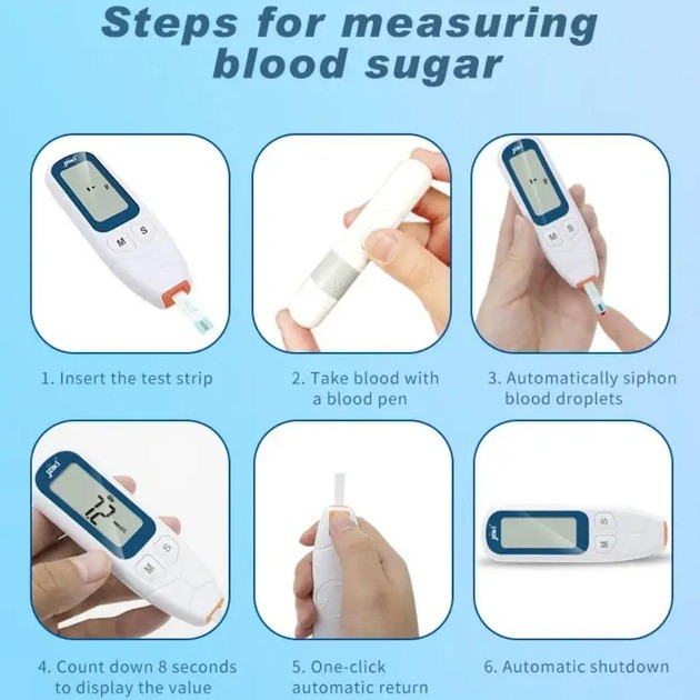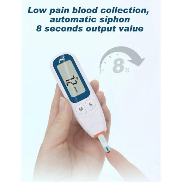 Вимірювач цукру в крові забезпечує результат усього за 8 секунд і вимагає мінімальний об'єм крові, що робить процедуру комфортною. Великий HD-дисплей зображає дані чітко та зрозуміло, а наявність двох одиниць вимірювання (mmol/L і mg/dL) дає змогу зручно використовувати прилад у будь-якій країні та легко обмінюватися даними з лікарем.
