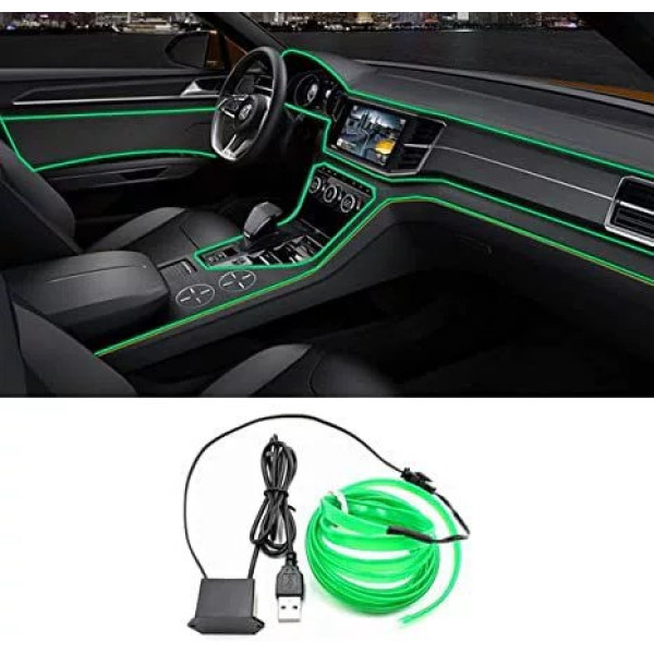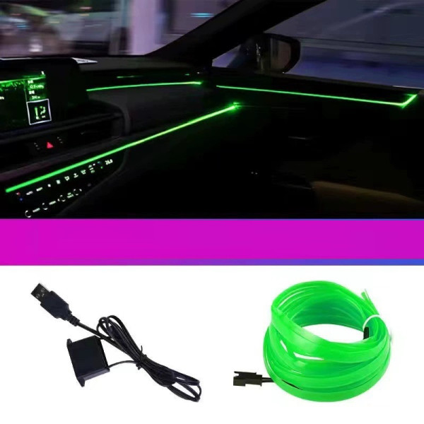 Гнучкий LED неон 5 м зелений з кантовою крайкою для салону автомобіля й приладювання USB