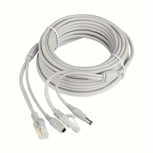 Готовий комбінований кабель RJ45 + DC завдовжки 20 метрів призначений для зручного під'єднання IP-камер відеоспостереження, маршрутизаторів, точок доступу та іншого мережевого обладнання. Кабель виготовлений із чистої міді, що забезпечує надійне передавання даних і живлення на дальні відстані без втрат.
