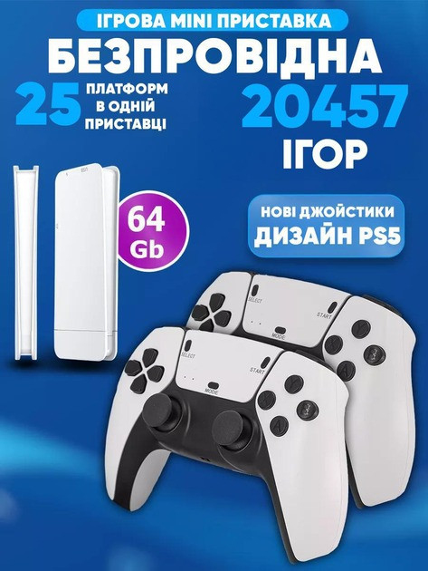 До комплекту входять два бездротові джойстики на частоті 2.4 ГГц, що забезпечують миттєвий відгук і зручне керування. Приставка працює системою Linux RetroArch і підтримує інтерфейси російською, українською та англійською мовами. Game Stick M15 стане чудовим вибором для прихильників ретроігор і компактних ігрових рішень.