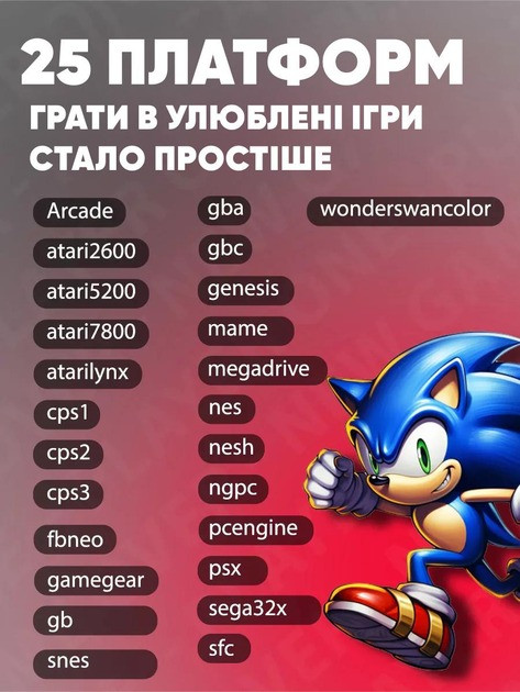 Сумісність з акумуляторами PS1, MAME, SEGA, GBA