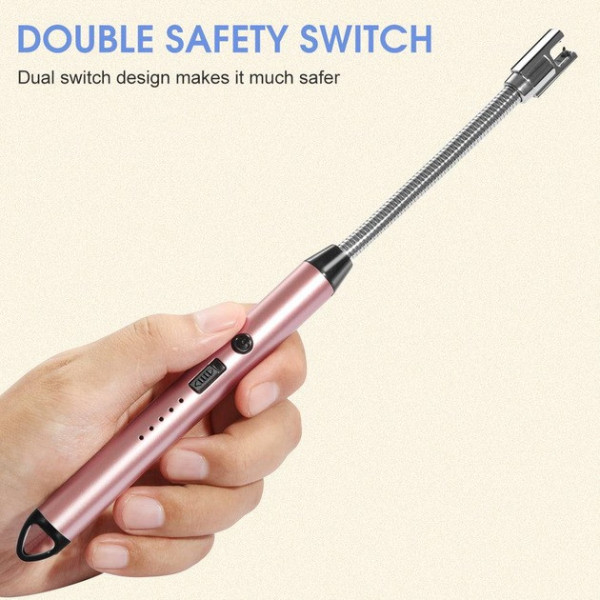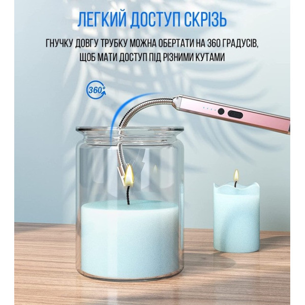 Імпульсна USB запальничка для свічок, кухні та плити з гнучкою трубкою й захистом, рожева