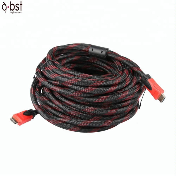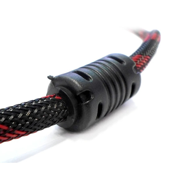 Кабель HDMI-HDMI 15 м із позолоченими контактами та посиленим обплетенням чорний/червоний