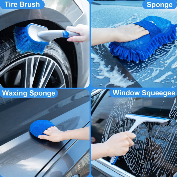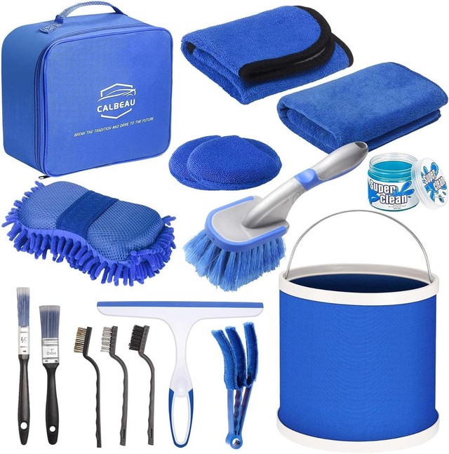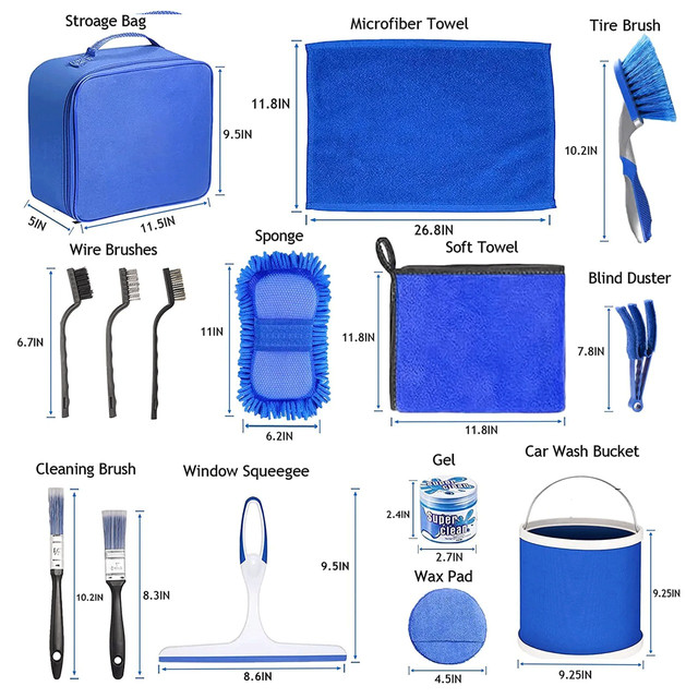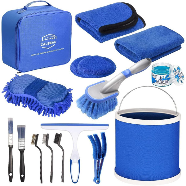 Комплект для миття й прибирання автомобіля CS-003, 14 предметів у сумці, блакитний