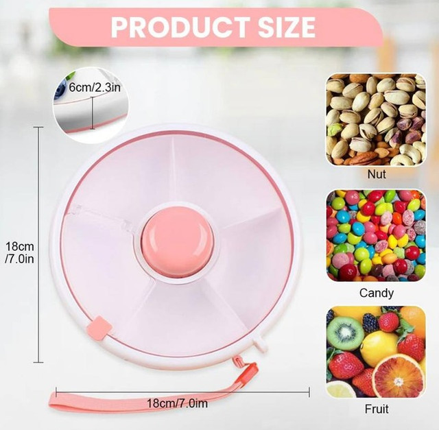 Обертовий ланчбокс AND 130 з 5 відділеннями — це практичне рішення для зберігання й подавання перекусів, фруктів, горіхів і снеків. Діаметр 18 см і висота 6 см роблять його компактним і зручним для сумки або рюкзака.