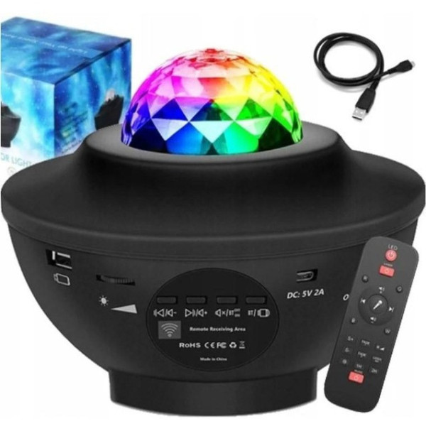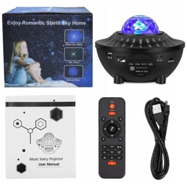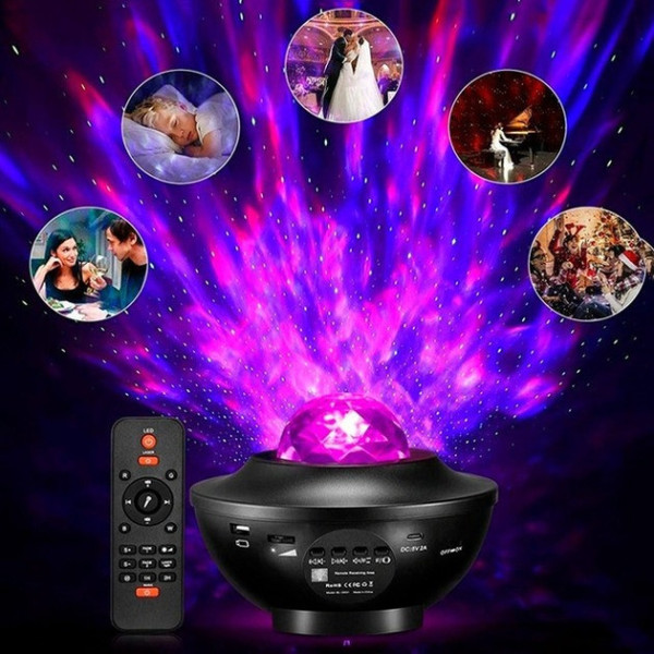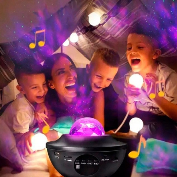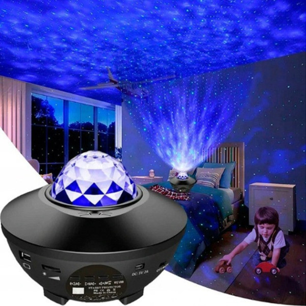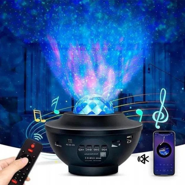 Створіть неповторну атмосферу в спальні, вітальні або дитячій за допомогою багатофункціонального проєктора. Він поєднує лазерне та LED-освітлення, динамічну проєкцію хвиль і зірок, а також вбудований музичний плеєр із Bluetooth.
