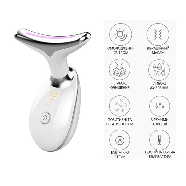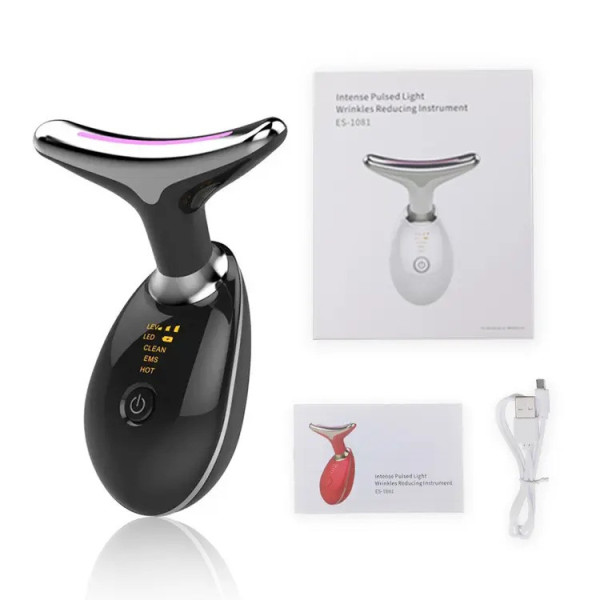 Ліфтинг-масажер для шиї та обличчя ES-1081 — це пристрій для комплексного догляду за шкірою в домашніх умовах. Він поєднує в собі мікрострукову терапію, LED-світло, іонотерапію й термомасаж, забезпечуючи видимий ліфтинг-ефект усього за 10 хвилин на день. Компактний та ергономічний прилад допомагає підтягнути шкіру, зменшити зморшки, позбутися другого підборіддя та поліпшити тонус шкіри.