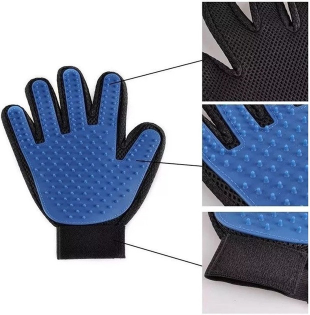 Масажна рукавичка для вичісування шерсті для котів і собак True Touch Чорно-синя на праву руку