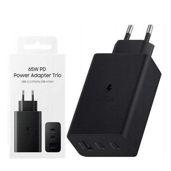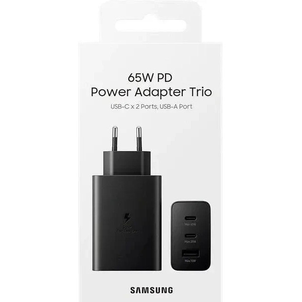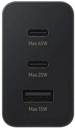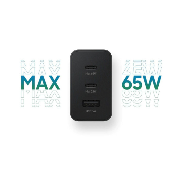 Мережевий зарядний пристрій 65W Trio з 2 Type-C і USB-A, підтримка швидкого заряджання PD 3.0/SFC/AFC, чорний