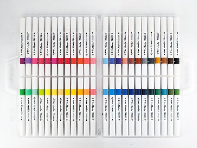 Маркери для малювання та скетчів у пластиковому футлярі. Двобічні, на спиртовій основі. У наборі 48 шт. Основна палітра, оптимально підібрана для малювання всіх стилів.
