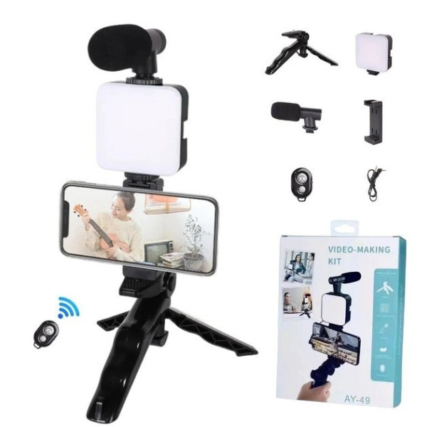 Комплект AY-49 підходить для блогерів, стримерів і творців контенту, забезпечуючи якісний звук, світло та зручне кріплення смартфона. Ідеальне рішення для запису відео вдома, на вулиці або в подорожі.
