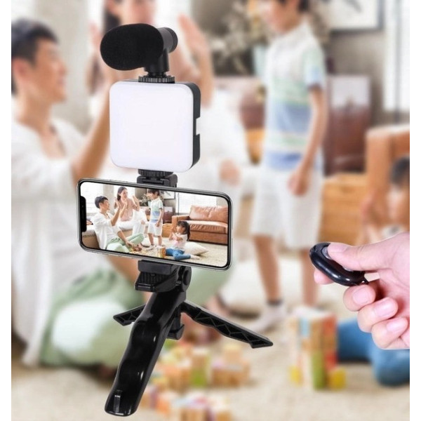 Набір блогера AY-49 4 в 1 — це багатофункціональний комплект, створений для зручного та якісного знімання фото та відео прямо з мобільного телефона. В одному рішенні поєднані трипод-трансформер, LED-підсвітка, спрямований мікрофон і універсальний тримач для смартфона з Bluetooth-пультом дистанційного керування.