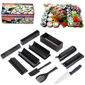 Суші, улюблена страва для любителів східної кухні! При цьому багато хто з них знає, що суші з супермаркету не мають належного смаку. Пропонуємо набір, який дозволить вам приготувати чудові та свіжі страви в домашніх умовах, використовуючи натуральні продукти! У комплекті пристрої, що дозволяють виготовити як великі так і маленькі роли круглих, квадратних, трикутних форм, або навіть у формі серця. Також включені лопатка та вилка, що допомагають у приготуванні.
