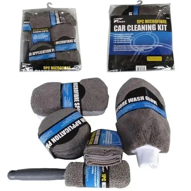 Набір рушників і аксесуарів із мікрофібри 9 в 1 для миття та полірування автомобіля