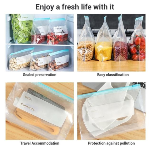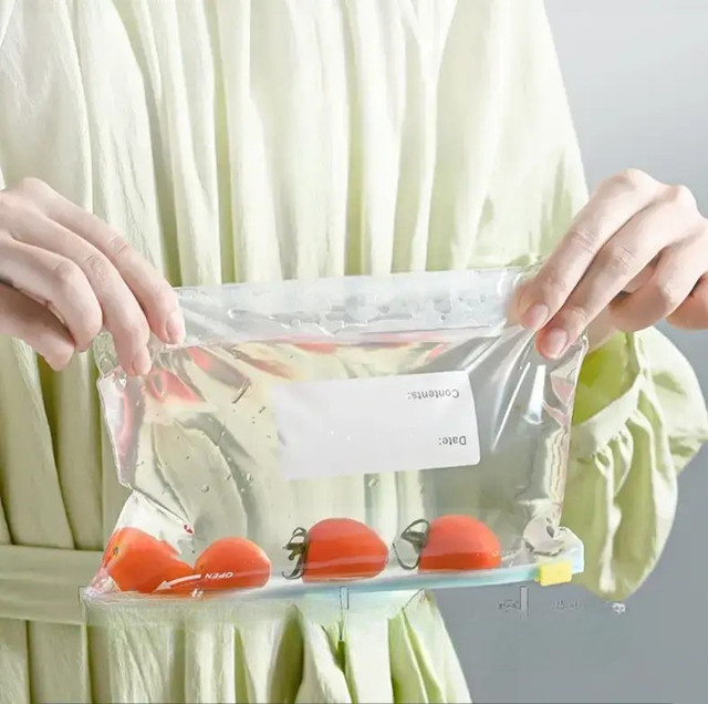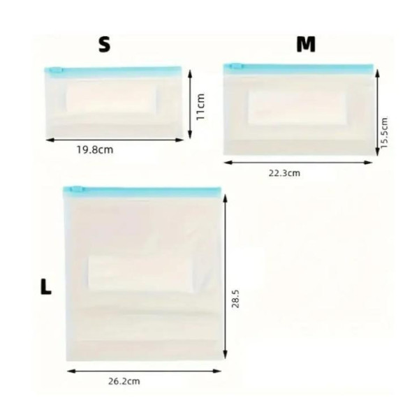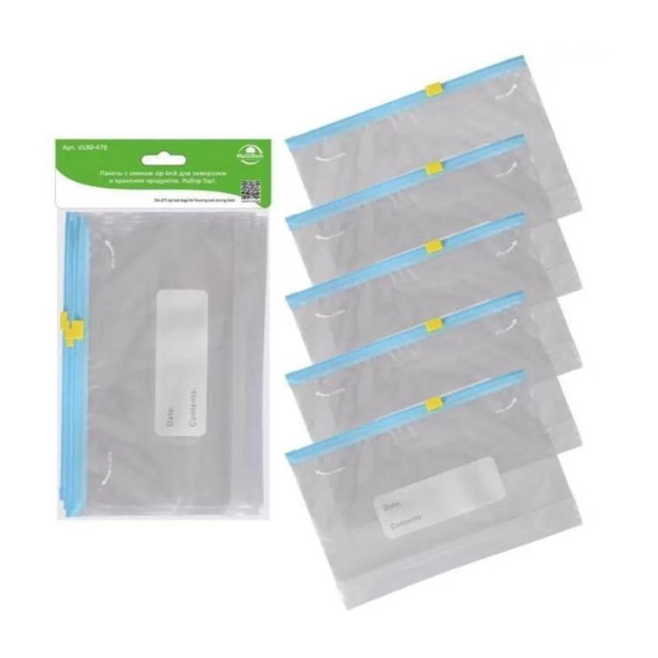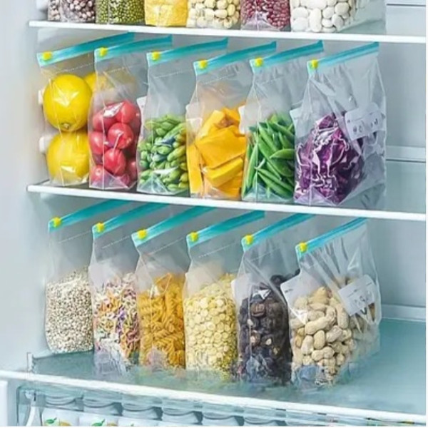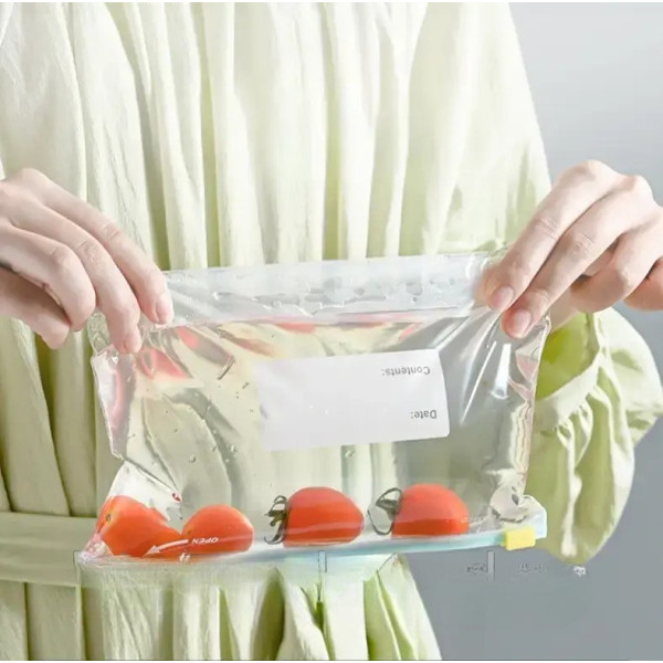 Герметичний Zip-lock замок захищає їжу від вологи, запахів і повітря, зберігаючи натуральний смак і корисні властивості продуктів. Пакети підходять для зберігання м'яса, овочів, фруктів, круп, закусок і готових страв. Багаторазове використання і вакуумний ефект під час видалення повітря роблять їх економічним і зручним варіантом для будь-якої кухні.