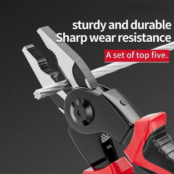 Набір змінних плоскогубців 5 в 1 — універсальний багатофункціональний інструмент для професіоналів і домашніх майстрів. До комплекту входять гострогубці для різання дроту, плоскогубці різних форм і розмірів, а також спеціалізовані насадки для роботи з кабелем. Виготовлені з високоякісної інструментальної сталі, інструменти забезпечують довговічність і надійність навіть за інтенсивної експлуатації.