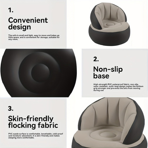 Диван швидко надувається за допомогою насоса та так само просто здувається для компактного зберігання. Завдяки легкій вазі та міцним матеріалам, виріб підходить для використання в приміщеннях і на вулиці. дизайн робить його гармонійним елементом інтер'єру та чудовим супутником для відпочинку на свіжому повітрі.