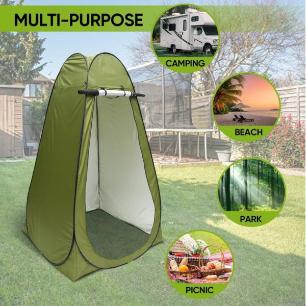 Мобільний намет із моментальною установкою — практичне рішення для душу, туалету або перевдягання на природі. Компактна та легка конструкція дає змогу розгорнути намет лише за кілька секунд без використання інструментів. Вона забезпечує приватність і комфорт навіть у польових умовах, ідеально підходячи для кемпінгу, пляжу, фестивалів чи риболовлі.