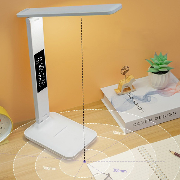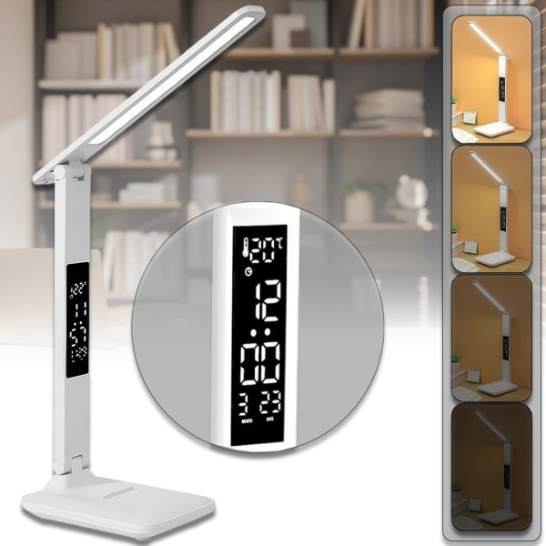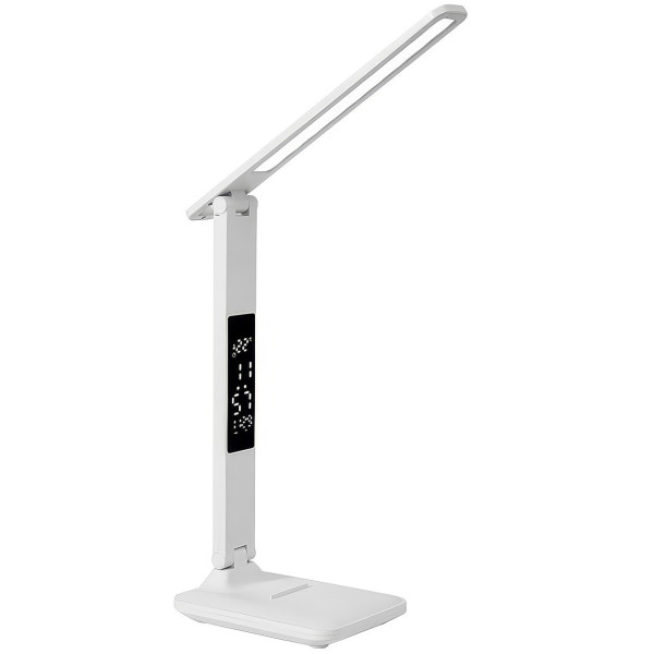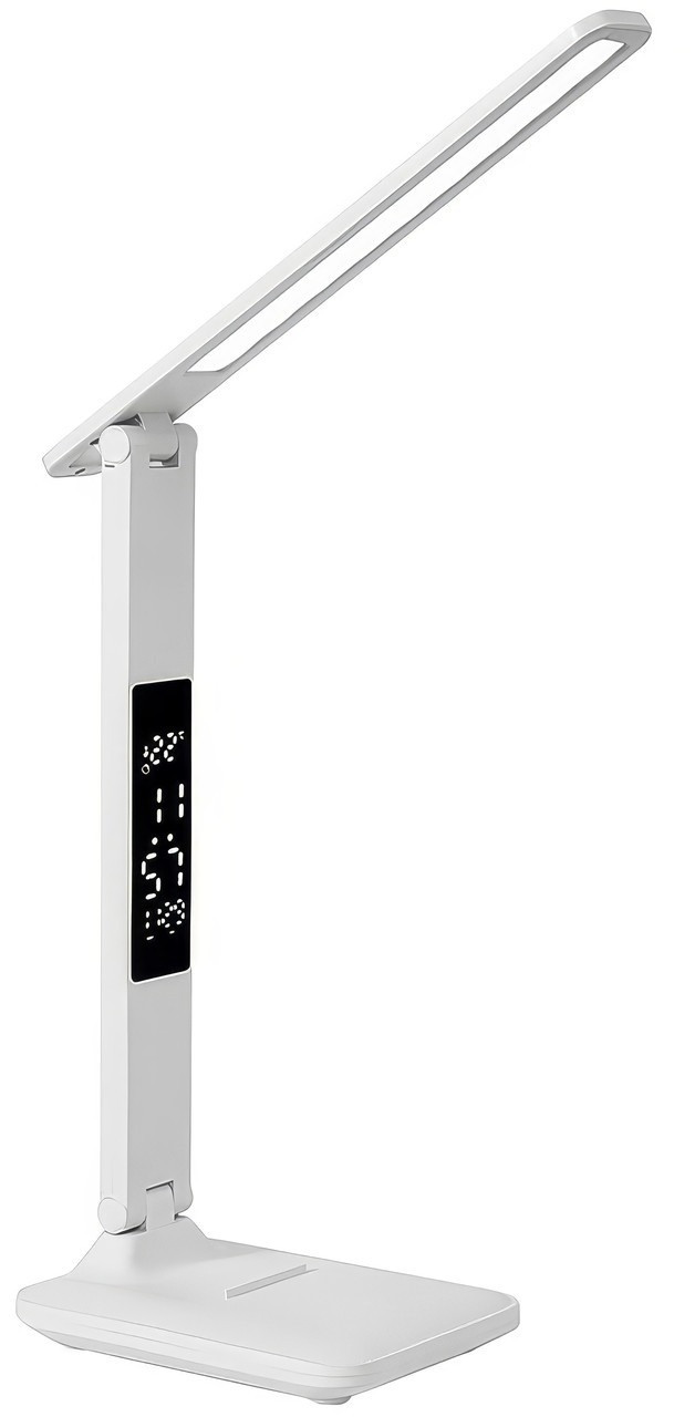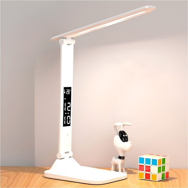 Настільна LED-лампа 868S з акумулятором, сенсорним керуванням, годинником і термометром White