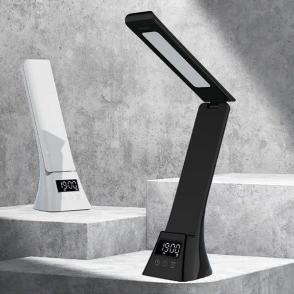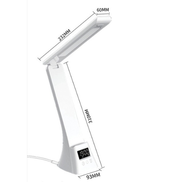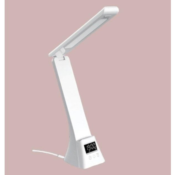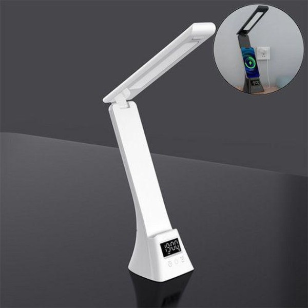 Настільна LED-лампа TYV-2088 з годинником і бездротовою зарядкою для телефона Біла