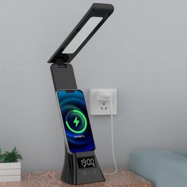 Сучасна настільна лампа TYV-2088 об'єднує три пристрої: джерело світла, бездротове заряджання та годинник із будильником. Вона стане зручним рішенням для робочого столу, тумби або кабінету, забезпечуючи не тільки комфортне освітлення, але й функціональність для повсякденного використання.