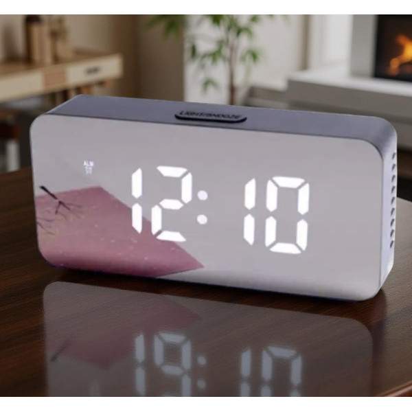 Настільний дзеркальний LED-годинник 1826 9089 з білою підсвіткою і будильником, USB живлення