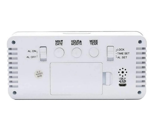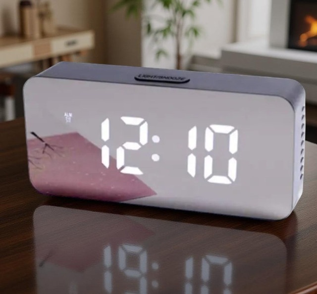 Годинник підтримує два режими яскравості — денний і нічний, що забезпечує комфортне використання будь-коли. Завдяки вбудованому будильнику пристрій допоможе вам прокидатися вчасно або нагадувати про важливі справи.