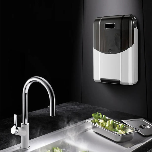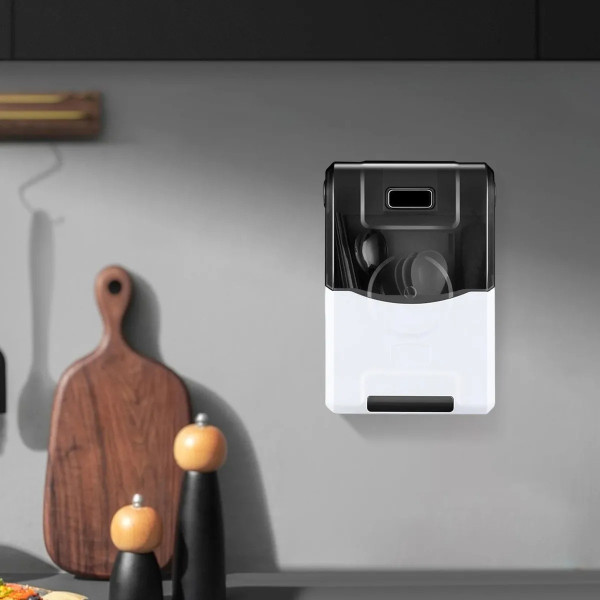 Закритий відсік із прозорою кришкою захищає прилади від пилу та вологи, зберігаючи їх у чистоті та порядку. Настінне кріплення робить встановлення простим і зручним, заощаджуючи простір на кухні.