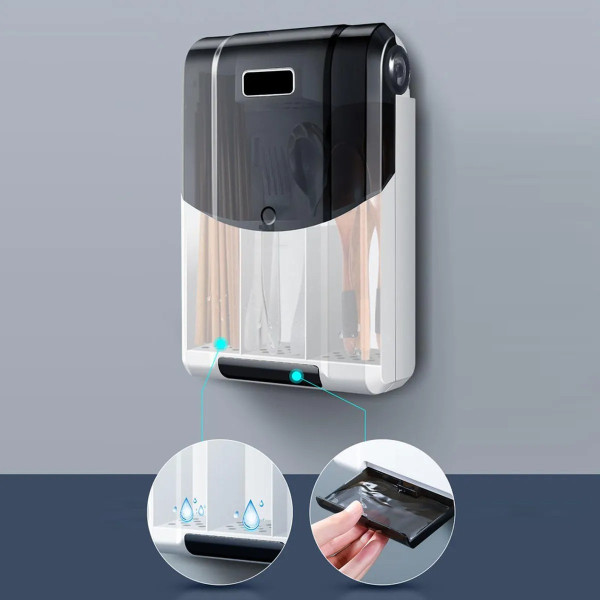 Настінний дезінфікувальний тримач для посуду AND LY-996 — це зручне та сучасне рішення для зберігання столового приладдя з максимальною гігієною. Пристрій обладнаний вбудованою УФ-лампою, яка знищує до 99,9% бактерій і мікробів, забезпечуючи безпечне використання ложок, виделок і паличок.