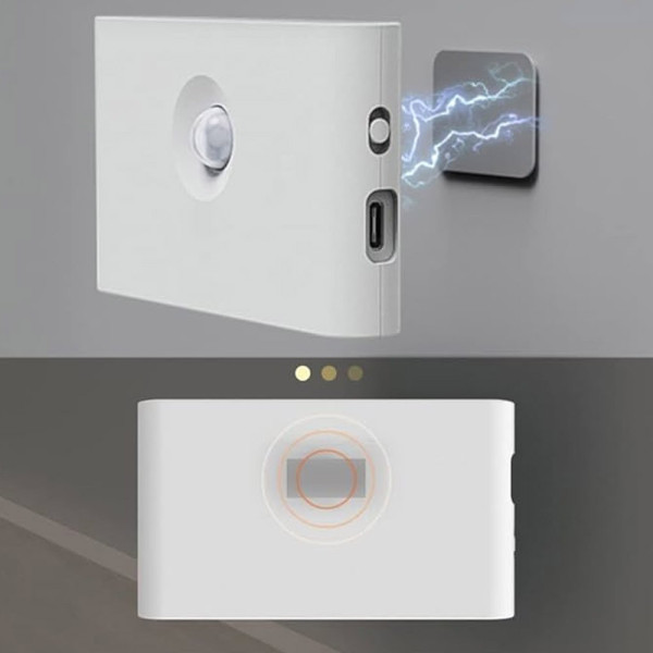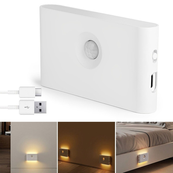 Настінний світильник із датчиком руху на акумуляторі USB, тепле біле світло, компактне
