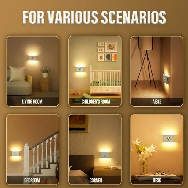 Настінний світильник із датчиком руху — практичне та зручне рішення для освітлення будинку без зайвих дротів. Пристрій працює від вбудованого акумулятора та заряджається через USB, забезпечуючи повну автономність і легкість встановлення. Вбудований датчик руху автоматично вмикає світло у разі наближення та вимикає його, коли в зоні виявлення нікого немає, що заощаджує енергію та продовжує термін роботи.