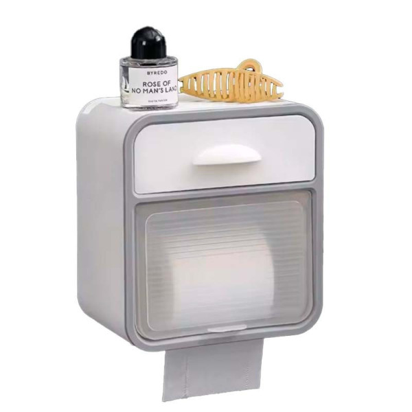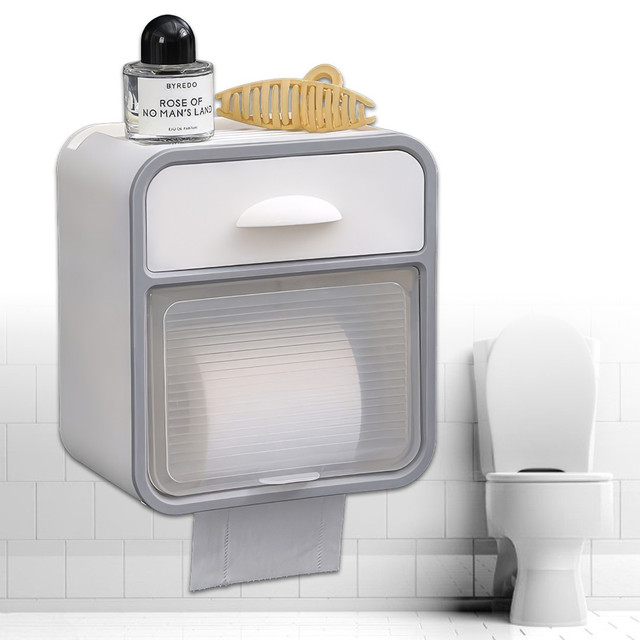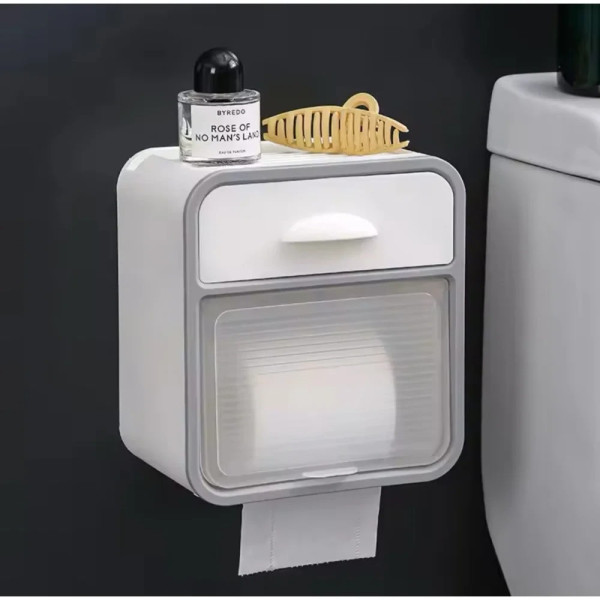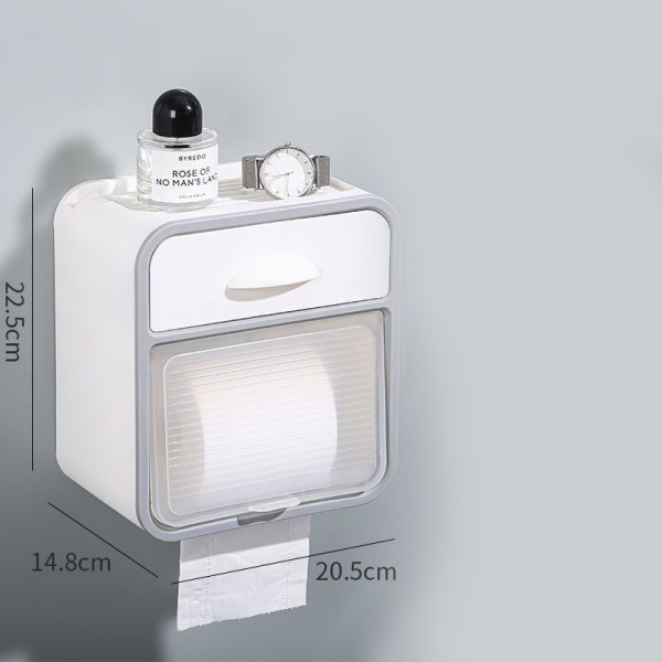 Настінний водонепроникний тримач для туалетного паперу AND-96-20-8PCS з полицею та ящиком, без свердління, білий